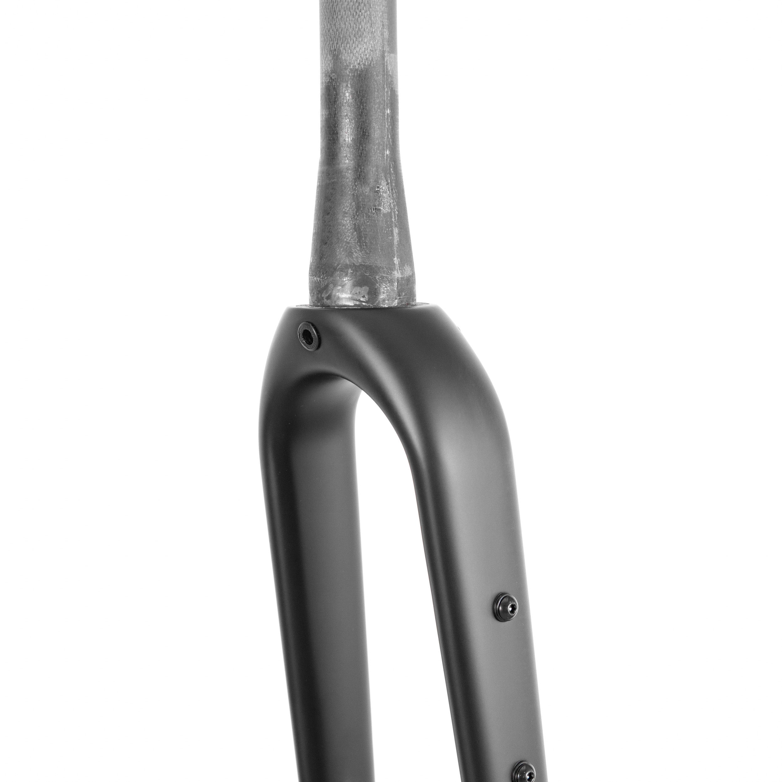 Finished in matte black carbon with a 1.125"–1.5" tapered steerer, a 12x100mm thru axle, and flat mount disc brake compatibility, this fork is the natural choice for integrated, high-performance gravel builds.